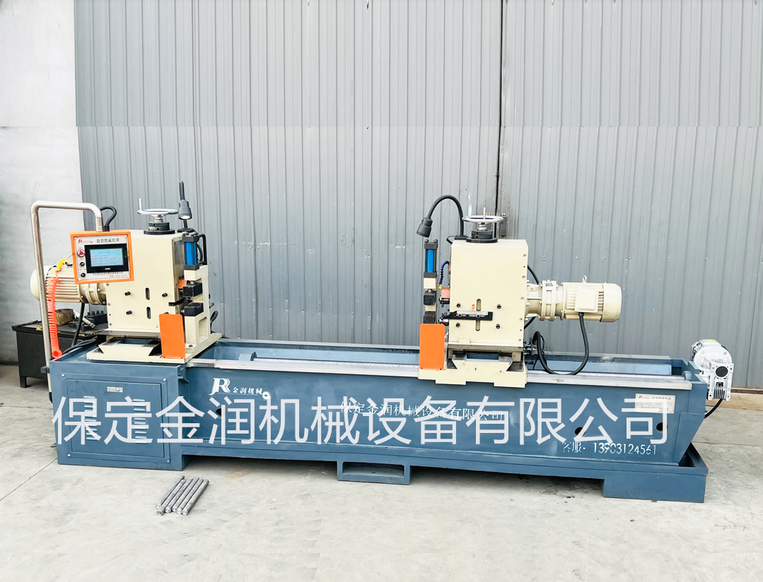 金潤(rùn)銑扁/銑槽機(jī)采用PLC控制技術(shù),是一款托輥軸自動(dòng)生產(chǎn)設(shè)備,具有加工速度快,精度高,刀具省,勞動(dòng)強(qiáng)度低等特點(diǎn),已在多個(gè)行業(yè)廣泛應(yīng)用。 本機(jī)為高配機(jī)型帶有儲(chǔ)料架和自動(dòng)進(jìn)料/卸料裝置(需單獨(dú)采購(gòu)),設(shè)備啟動(dòng)后可以一次性加工完儲(chǔ)料臺(tái)上放置的所有軸料,明顯減少了用工數(shù)量和提升了生產(chǎn)效率,同時(shí)由于設(shè)備運(yùn)轉(zhuǎn)時(shí)操作工的雙手離開了工作區(qū)域,非常有利于安全生產(chǎn),實(shí)現(xiàn)無(wú)人值守。(新型托輥軸扁槽加工設(shè)備,基座、滑臺(tái)、主軸座全部采用一次鑄造成型,具有良好的床身穩(wěn)定性和吸能減震作用。)
